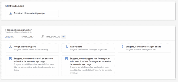 Det betyder for forbrugeren, at de har lettere ved at målrette deres annoncering og kan gøre det på et bedre og bredere datagrundlag. Man kan selvfølgelig også oprette sine egne målgrupper, og her har Google også forsøgt sig at gøre det nemmere for brugeren af GA4.