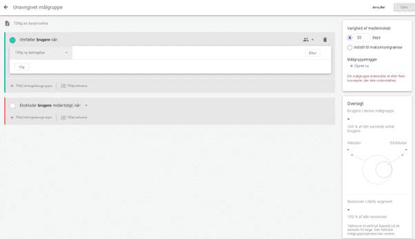 Når du opretter dine egne målgrupper, bliver du præsenteret for denne side: